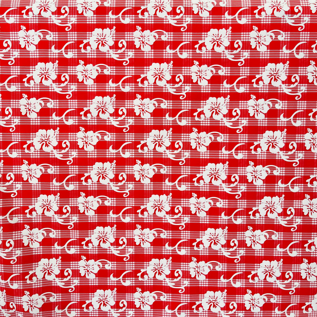 Cotton palaka fabric featuring an elegant hibiscus flower pattern throughout. This traditional Hawaiian-inspired textile combines the classic palaka check design with vibrant hibiscus motifs, perfect for authentic island-themed garments, home décor, or craft projects requiring premium cotton construction.
