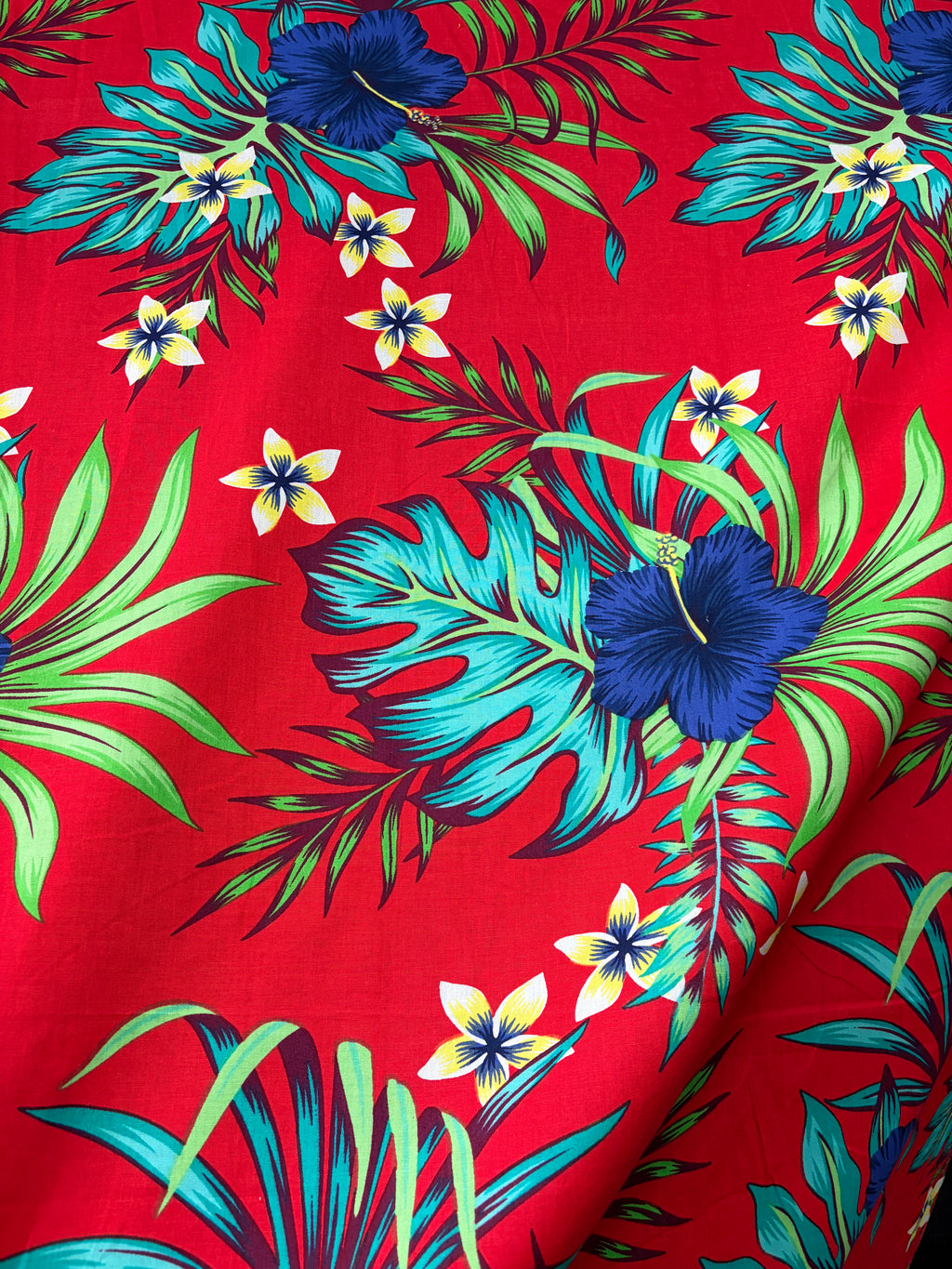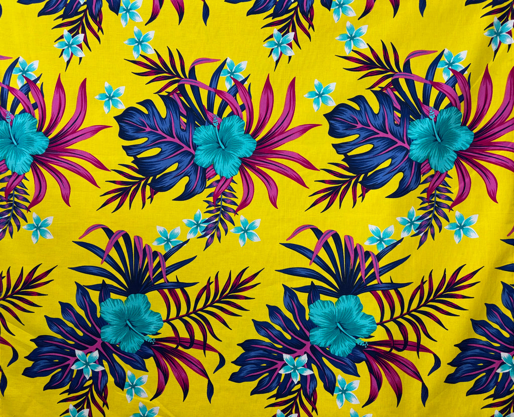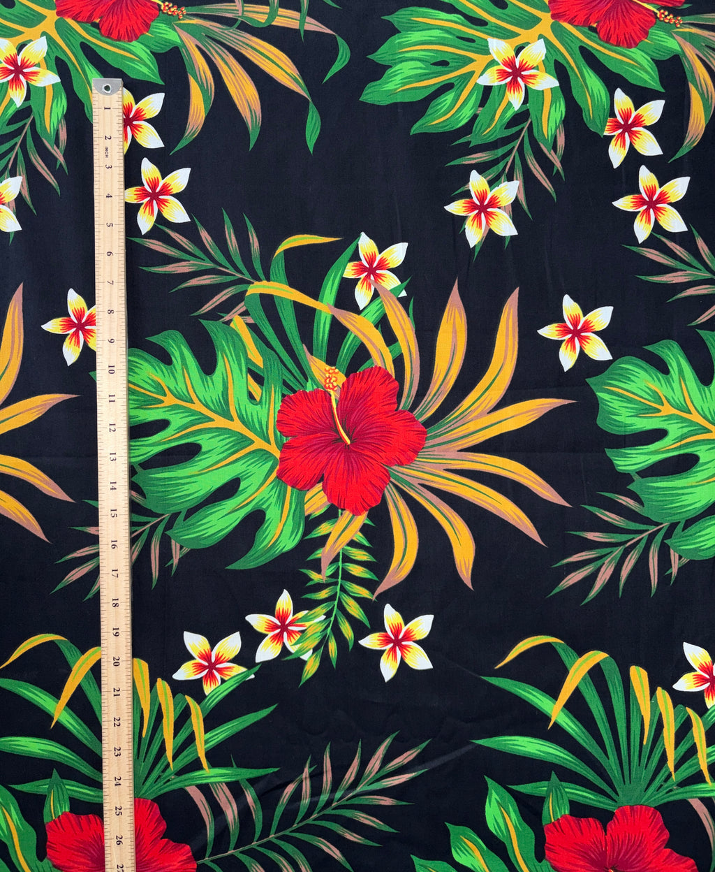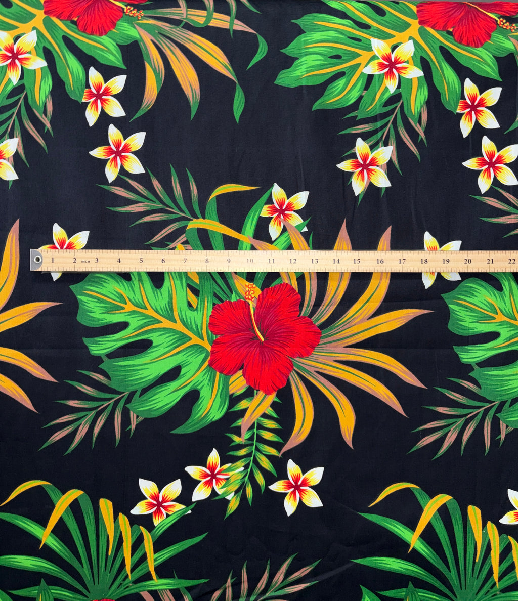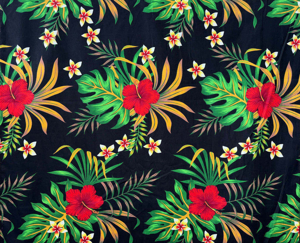 Hibiscus Monstera & Plumeria Flower Clusters Cotton Fabric | Islands Fabric