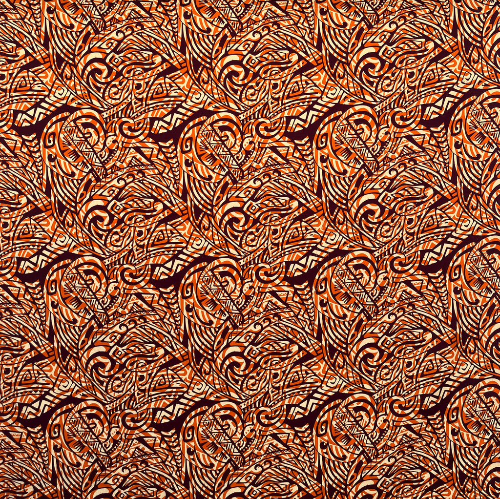 Traditional Tribal design in Jet black on 5 bright colorways (Red,Blue,Green,Rust,Orange). This soft, thick, slightly textured fabric can be used for upholstery.