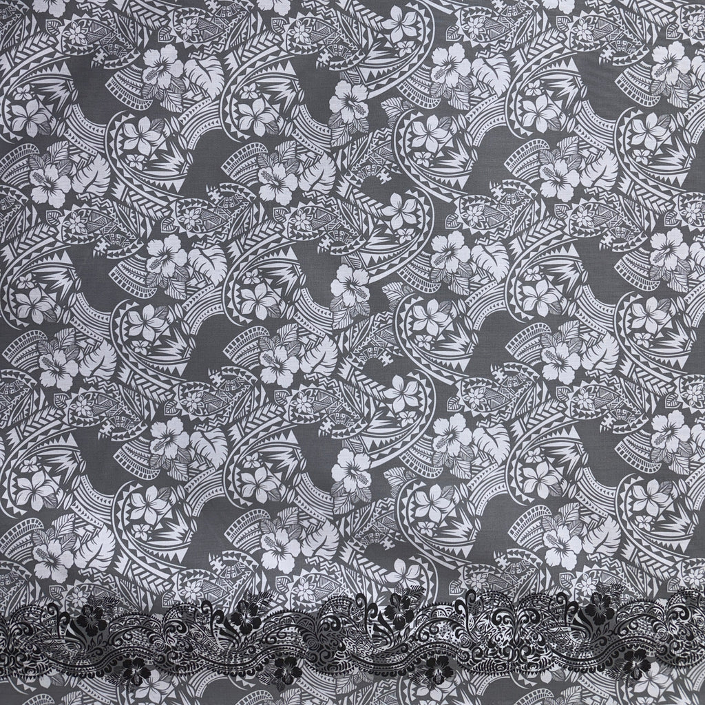 The Polynesian Hibiscus & Plumeria Flowers Traditional Tattoo Single Border Poly-Cotton Fabric is perfect for any project you want to decorate with a tropical floral design. This 65% polyester and 35% cotton fabric features beautiful hibiscus and plumeria flowers all over. You can use the single border fabric to create pillows, wall hangings, table runners, pillow shams and more!
