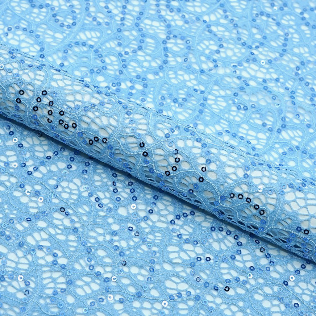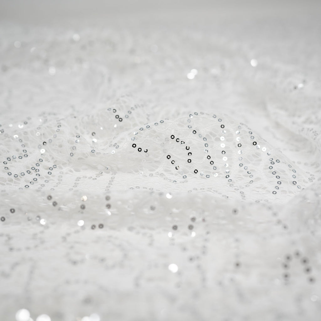 Isabelle Stretch Lace Sequin takes our classic Gabrielle Stretch Lace and adds some pizazz with embroidered sequins throughout. This fabric is excellent for dancewear, performance costumes, and formal attire applications. It's lightweight and durable with a degree of flexibility that makes it comfortable to wear. Tailors and garment designers will appreciate the fabric's superior construction quality. This fabric is perfect for creating high-quality eveningwear that is sure to make you stand out in the crowd. Create beautiful garments that move with you, thanks to its 2-way stretch construction and breathable feel.