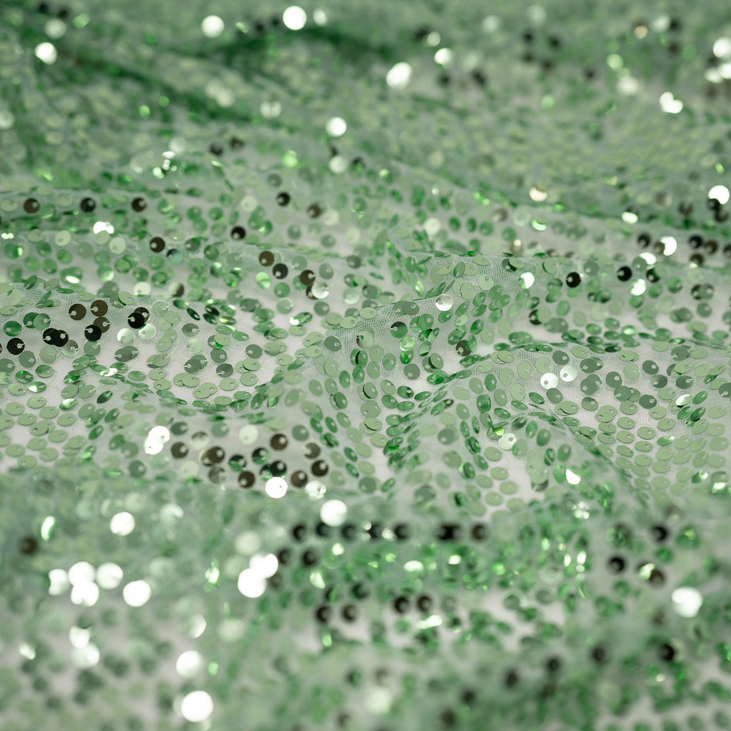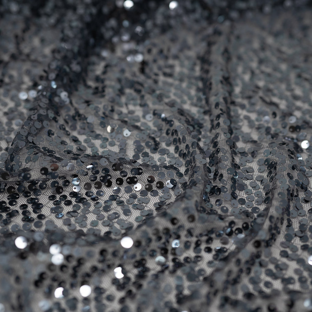 Mandy Mesh Sequin features sequin embroidered on a mesh base. This fabric is excellent for formal wear applications. This fabric is perfect for any special occasion, featuring a luxurious feel without compromising on durability or quality. It's an eye-catching fabric that will make a lasting impression. This fabric is extremely versatile, perfect for fashioning gowns, veils, bras, and even costumes. With an abundance of colorful and unique style options, you can create a beautiful, one-of-a-kind look that is sure to turn heads.