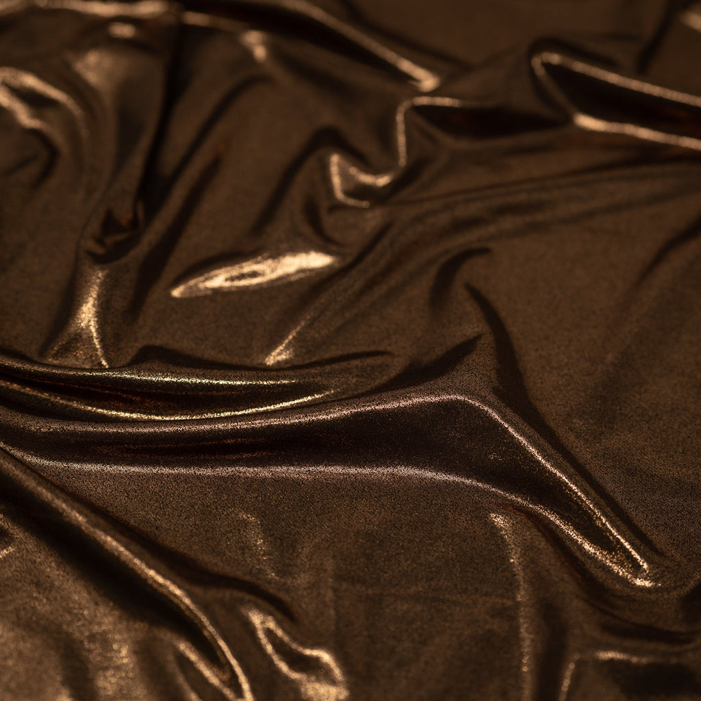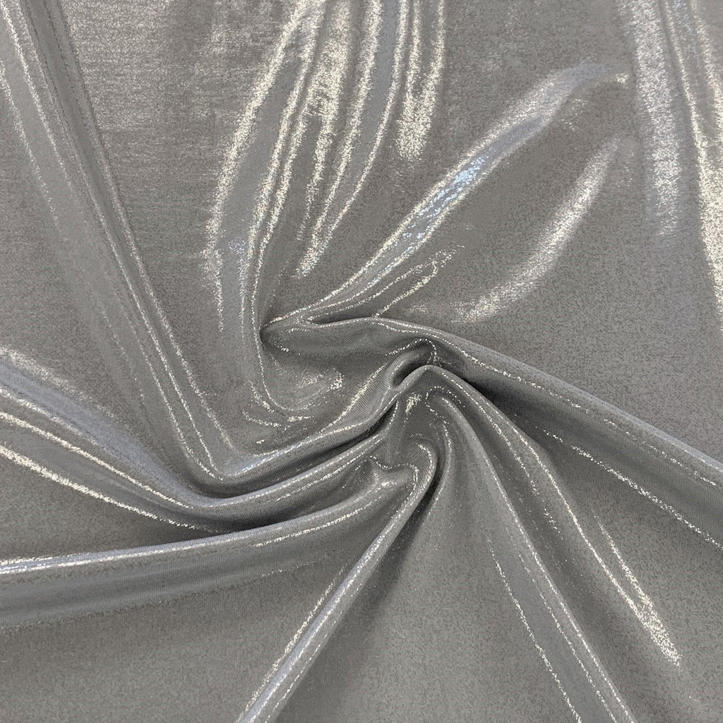 Sheen is a 4-way stretch Polyester Spandex with All-Over Foil. This fabric is ideal for formal designs, performance costumes, and cosplay. Its soft hand feels and reflective foil makes it perfect for character-inspired and flamboyant looks. Experience fashion and function in one fabric with Sheen Foiled Spandex. It's great for creating dazzling, intricately designed garments that are sure to stand out. Perfect for thoughtful costumes and fashionable looks alike, Sheen Foiled Spandex is a must-have addition to any fabric collection. This fabric has an excellent drape, making it perfect for creating a stunning silhouette. Its durable construction ensures long-lasting wear, and it's easy to care for—simply machine wash and tumble dry! Make a statement with this shimmery polyester-spandex blend and show off your style.