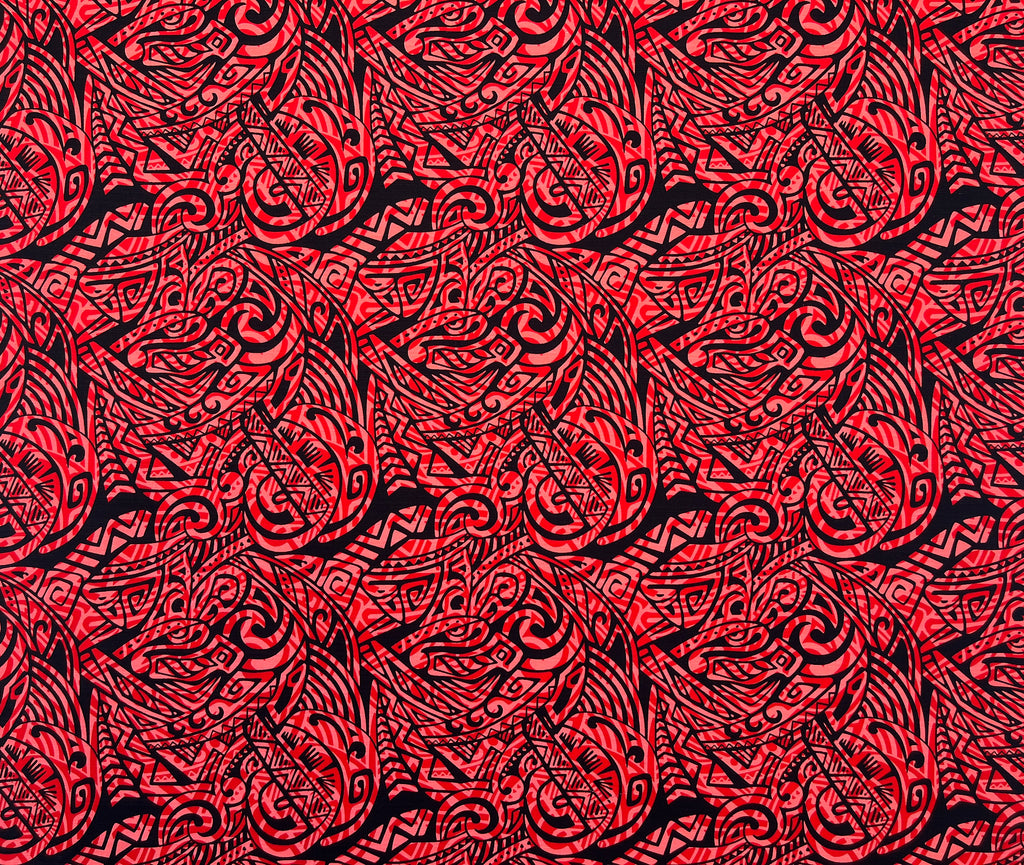 Traditional Polynesian Tattoo Swirl design Cotton Light Barkcloth Fabric | Islands Fabric